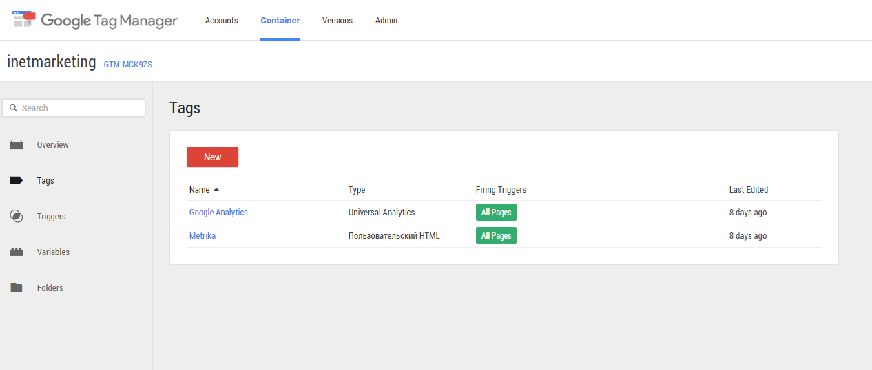 Как видно на скриншоте, кроме выполненных кодов счётчиков, у нас сработали теги отправки событий и в Google Analytics и в Метрику